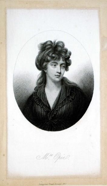 The decision to join the Society of Friends was not taken lightly. From girlhood she had always been drawn to what Joseph John called ‘worldly pleasures’; she was popular in the best social circles, she enjoyed flirting, fashion and gossiping. But her mother died when Amelia was 15 and she became the mistress of her father’s household. Well educated, attractive and accomplished, she filled the role admirably and enjoyed the opportunities it gave her to mix with the city’s intelligentsia. Her father was a friend of the writer and philosopher William Godwin, who spent time with the Aldersons when he visited Norwich from London. Amelia, who had hopes of becoming a writer, sought his advice and opinion on her literary efforts. In her 20s, she herself began to make regular visits to the capital and became part of Godwin’s circle of artists, thespians and writers. These included the celebrated actress Sarah Siddons, the feminist writer Mary Wollstonecraft, who became Godwin’s wife, and the Royal Academician John Opie, who became Amelia’s husband in 1798.
